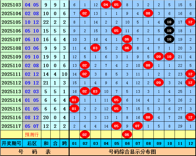 三少第2025118期体彩大乐透后区尾数分析:上期后区开出奖号05和07,奖号尾数为2路和1路,本期后区排除1路尾数号码,五码参考02、03、06、10、12。