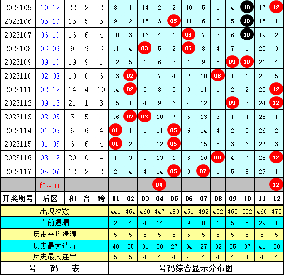 大乐透后区最近20周星期六(第2025057期-第2025117期)奖号频次统计: 出现1次的奖号:11 出现2次的奖号:03 07 09 12 出现3次的奖号:04 06 08 出现4次的奖号:01 02 出现6次的奖号:05 出现8次的奖号:10 其中,后区奇偶比为17:23,大小比为18:22,012路比为9:17:14,本期后区金胆参考04。 大乐透后区最近10周星期六(第2025089期-第2025117期)奖号频次统计: 出现0次的奖号:04 11 出现1次的奖号:01 03 09 12 出现2次的奖号:02 06 07 出现3次的奖号:05 08 出现4次的奖号:10 其中,后区012路比5:7:8,奇偶比8:12,大小比11:9,本期一码看好12。 牛顿大乐透第2025118期后区综合推荐: 后区必杀5码:02 03 06 07 09 后区参考5码:04 05 08 10 12 后区参考3码:04 05 12 后区参考2码:04 12