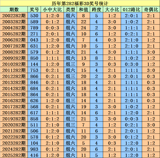 开奖回顾:福彩3D第2025282期奖号为:416。