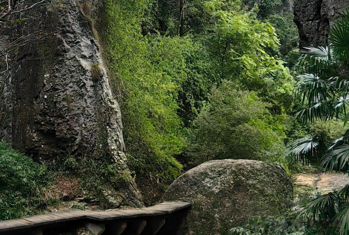 发展到现在,韩妃江古道既有江南罕见的碧水丹霞,也有“小桂林”既视感,沿途的峡谷、瀑布、古桥、梯田等元素,以及“倒脱靴”【11米神奇巨石+清澈碧潭,拍照张张都是大片】,“韩妃江游步道”【树影斑驳的光影仙境,午后氛围感绝了】,“茶园梯田”【满眼清新绿意,碰上采茶季更有人文气息】等亮点,“通天饭甑”【形似古代炊具的巨石甑】,着实是大自然的绿野仙踪!