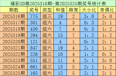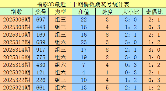 上期回顾:福利彩票3D第2025325期开出奖号165。奖号类型:组六,大小形态:小大大,奇偶形态:奇偶奇。