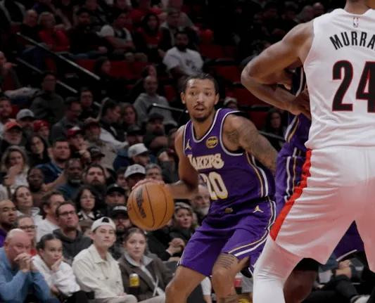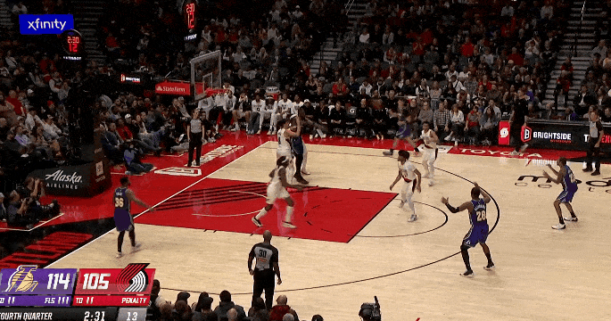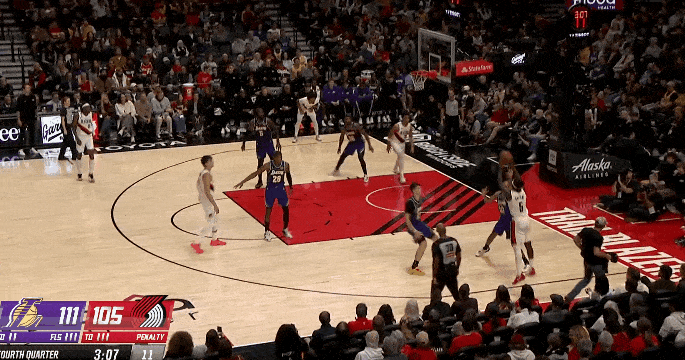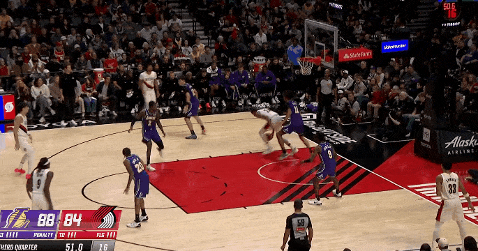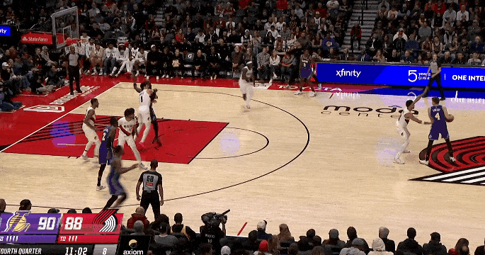 首节比赛湖人率先4:0开局,不过开拓者利用阵容优势很快调整,首节33:24领先9分,第二节上来开拓者一度领先13分,随后湖人开始发力,艾顿频频中投得手,八村连续2个三分,半场前湖人追到52:53仅落后一分。 下半场开始湖人依旧紧咬,开拓者没法拉开比分,随后湖人21岁青年军史密斯突然爆发,利用速度一次次撕开开拓者防守,三节过后湖人90:86领先4分。