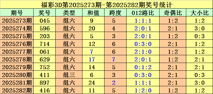 开奖回顾:第2025282期福彩3D奖号为416。